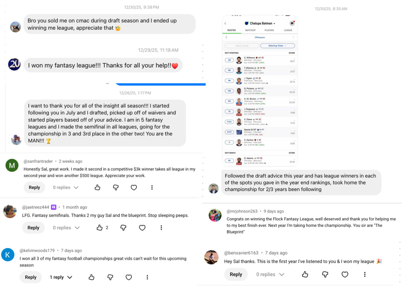 Mistake #1. Trusting the wrong information and how to avoid overcomplicating thingsMistake #2. Drafting without a plan and why you spend too much time thinking about the early roundsMistake #3. Trying to understand advanced stats and why they don't matter as much as you thinkMistake #4. Managing waivers and trades like an amateur and why in-season moves matter more than everMistake #5. Playing fantasy football like a fan and why winners follow an actual blueprint